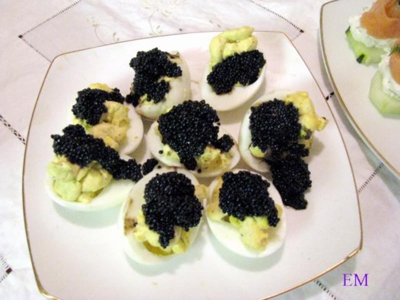 Ouă umplute cu icre negre şi maioneză