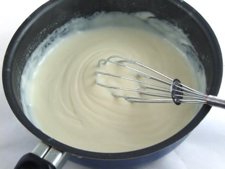 1 pahar lapte, 1 lingură făină, 1 lingură unt proaspăt, sare.