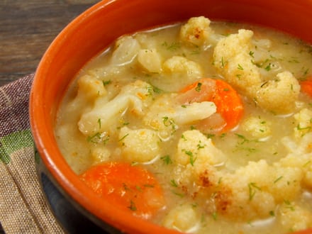 1 l apă, 1 conopidă mijlocie, 1 pătrunjel, 1 morcov, 1 ceapă, 1 lingură unt, 1 linguriţă făină, 1 linguriţă m ărar tocat, 1 pahar smântână, sare.