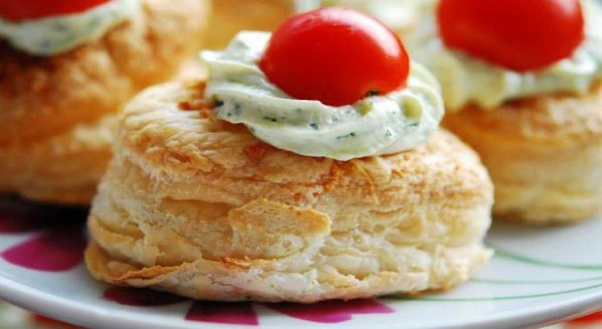 500 g foietaj, 50 g parmezan ras, 40 g pătrunjel, 200 g brânză feta, 2 cutii Almette cu smântână, 2 căţei usturoi zdrobiţi, 8 linguri ulei măsline, 30 roşii cherry tăiate pe jumătate. continuați să citiți