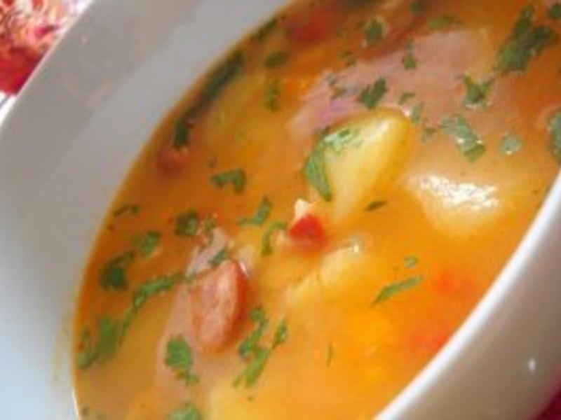 2 cartofi, 1 morcov potrivit, o jumătate de ţelină, 2 cepe, 2 ardei, 1 rădăcină pătrunjel, o mână de fasole verde, câteva bucăţele de conopidă, 500 ml suc de roşii, vegeta, 3 linguri ulei, plante aromatice (busuioc, cimbru, coriandru) şi 100 g soia cuburi. continuați să citiți