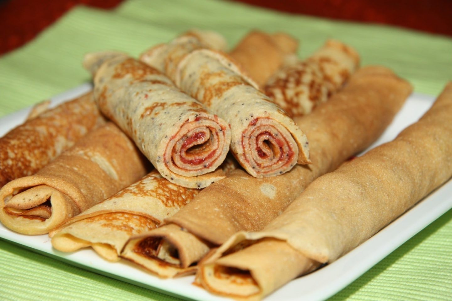2 ouă, 1 ceaşcă făină, 1 ceaşcă lapte, un praf sare, dulceaţă (marmeladă, brânză, carne)