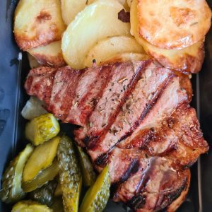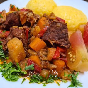 Ingrediente: carne de porc, carne de vita, faina alba ulei, ardei, ceapa, morcov, condimente, tacamuri incluse, 450 grame