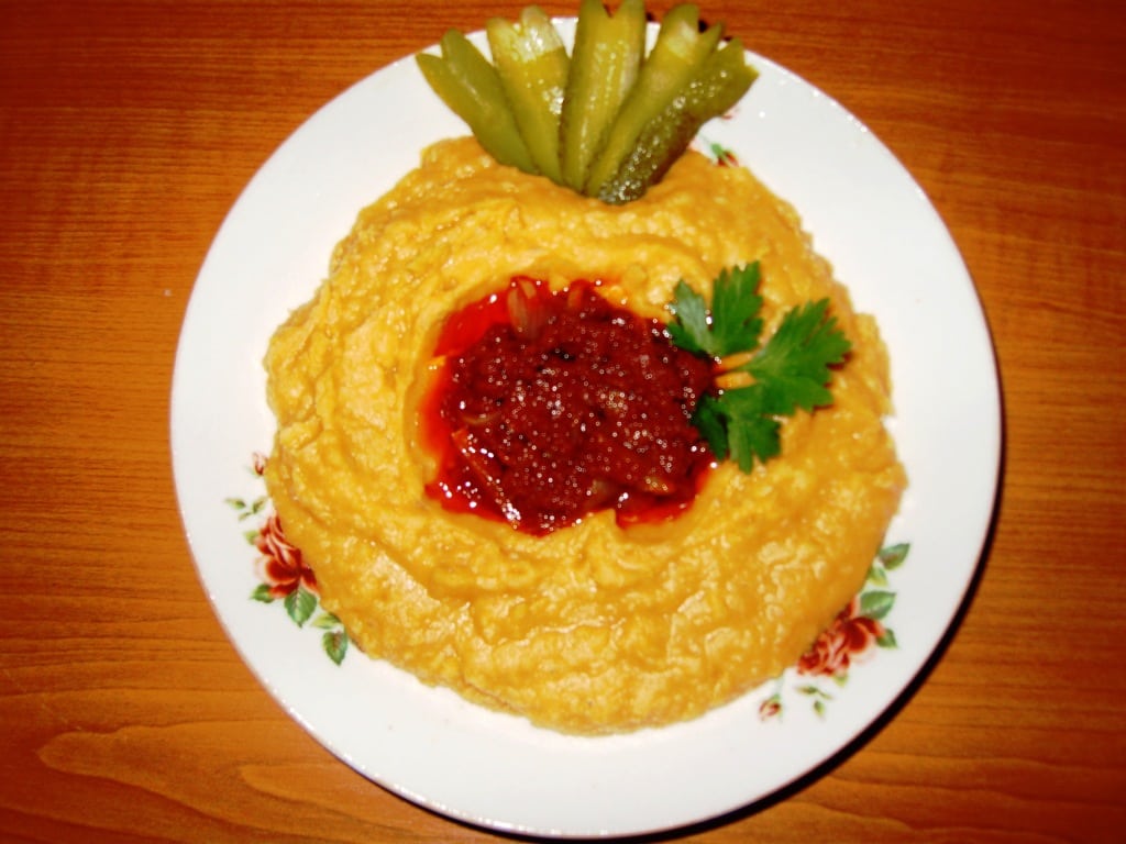 Se fierbe fasolea la fel ca în reţeta precedentă. Când este bine fiartă, se amestecă în blender cu uleiul si zeama de lămâie, folosind o cantitate suficientă de apă în care a fiert fasolea, pentru ca să lucreze blenderul bine. După ce s-a obţinut o pastă fină, se adaugă măslinele tocate mărunt şi ceapa crudă, tocată foarte fin. Se potriveşte de sare. Este foarte gustoasă.